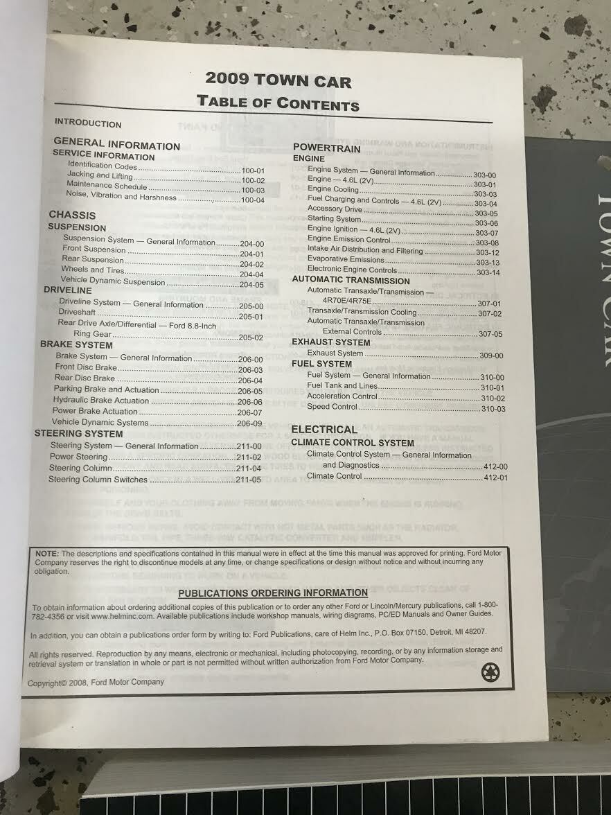 Full of information and illustrations, covers everything, step by step instructions, assembly/disassembly, exploded illustrations/diagrams/troubleshooting, great manual to have when owning/servicing a TOWN CAR and will be a great aid to keep your CAR on the road. These manuals will save you money in repairs/service. A must have if you own one of these vehicles.