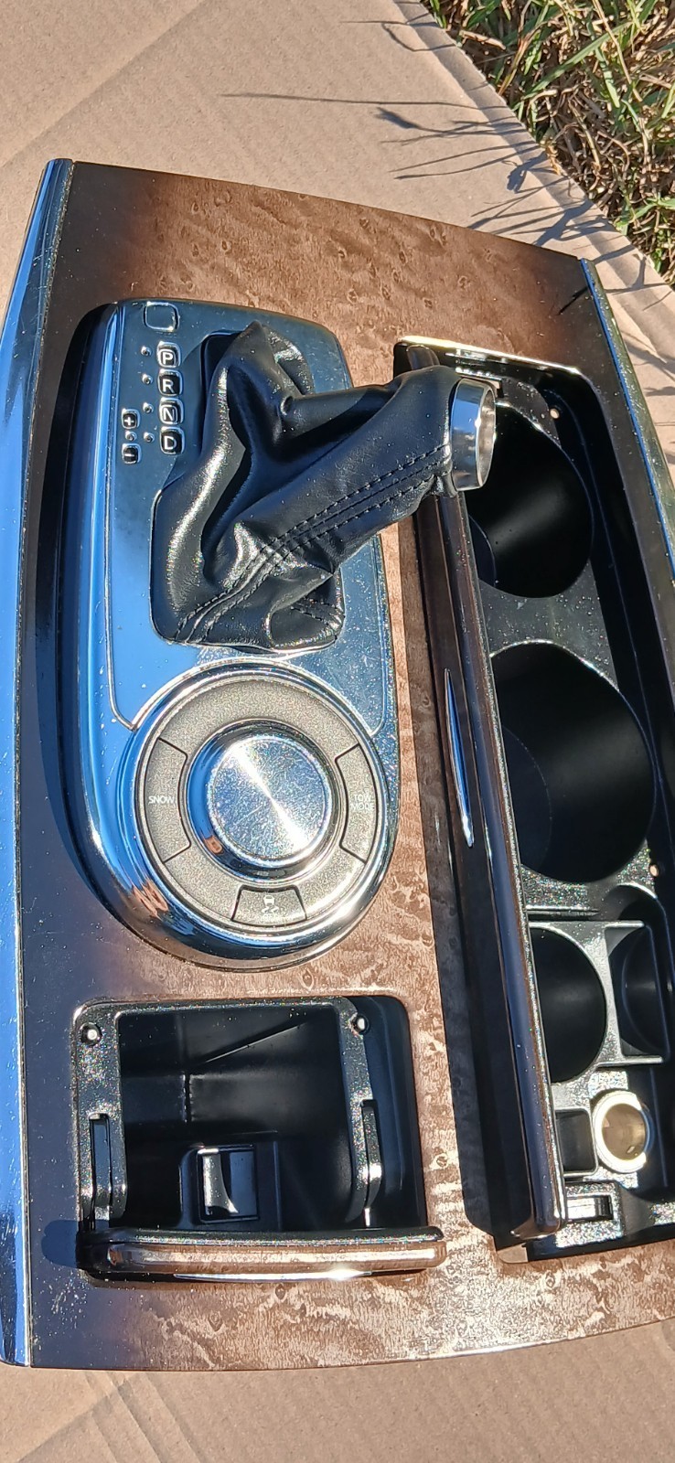 2011-2013 INFINITI QX56 CENTER CONSOLE SHIFT BEZEL WITH SHIFT BOOT, CUP HOLDER AND USB CONNECTION ITEM IS IN GREAT SHAPE CHECK PICTURES FOR CONDITION PLEASE COLOR TO MAKE IS THE COLOR YOU WANT COMES AS SHOWN