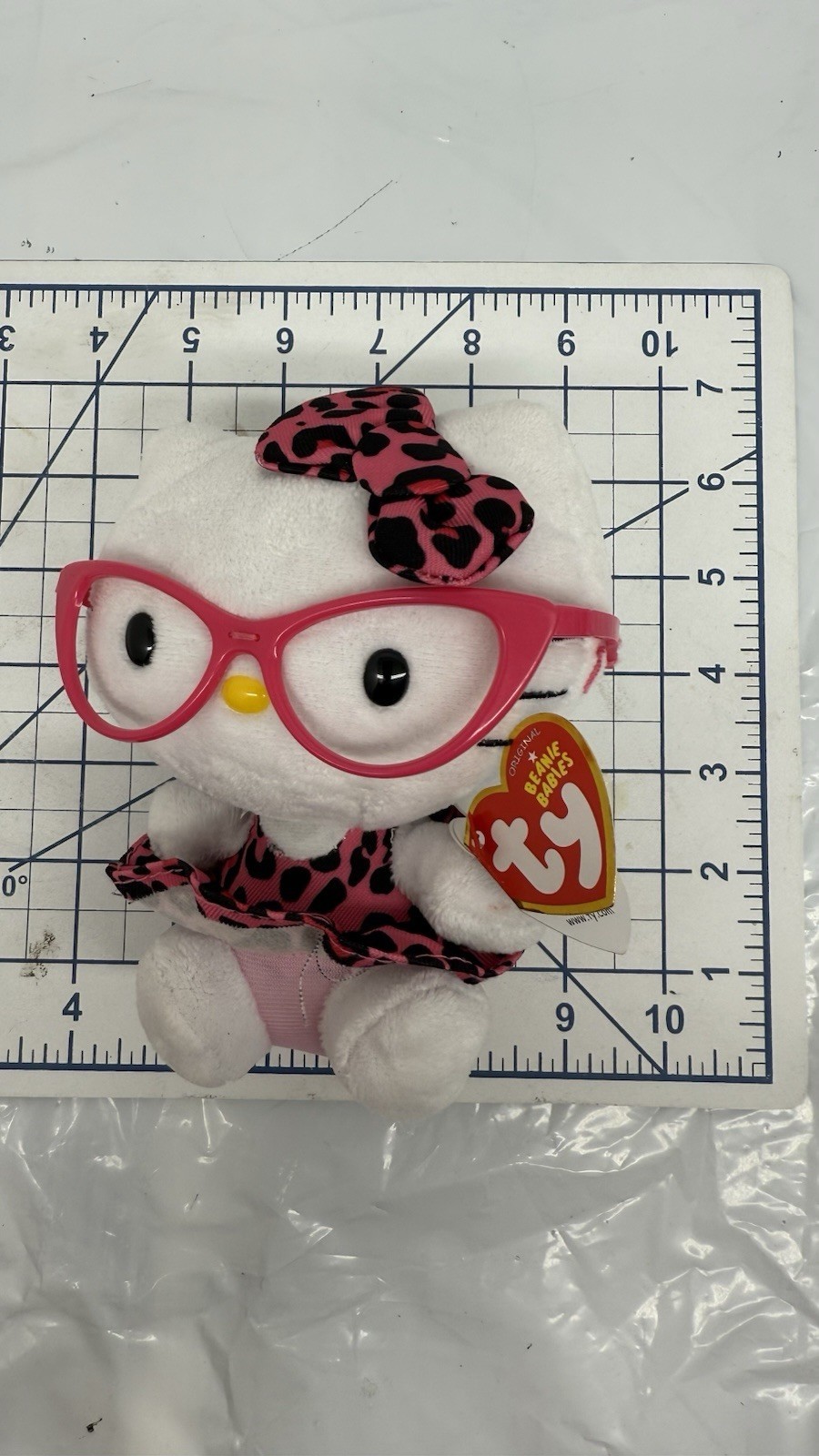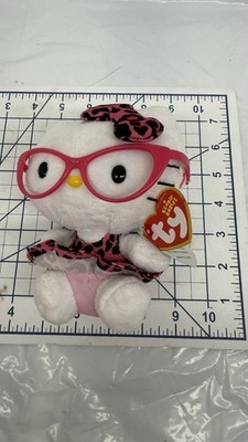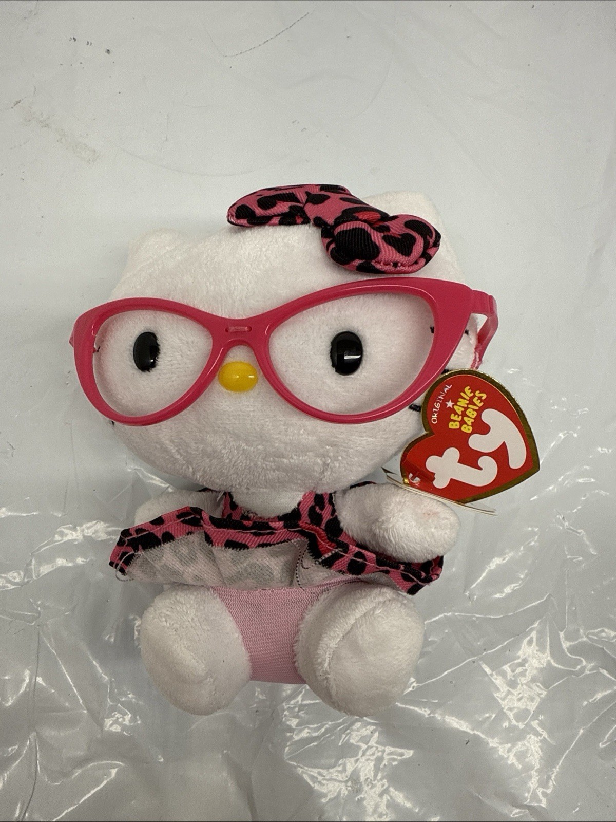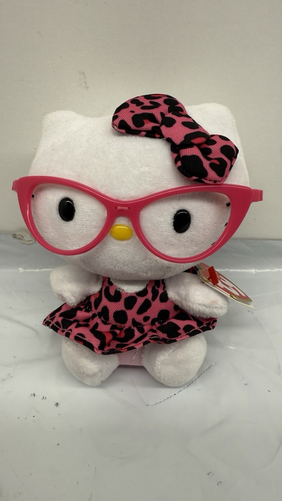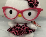 - 2012 Hello Kitty Ty Sanrio Plush 7” Glasses Pink Leopard Print Dress And Bow