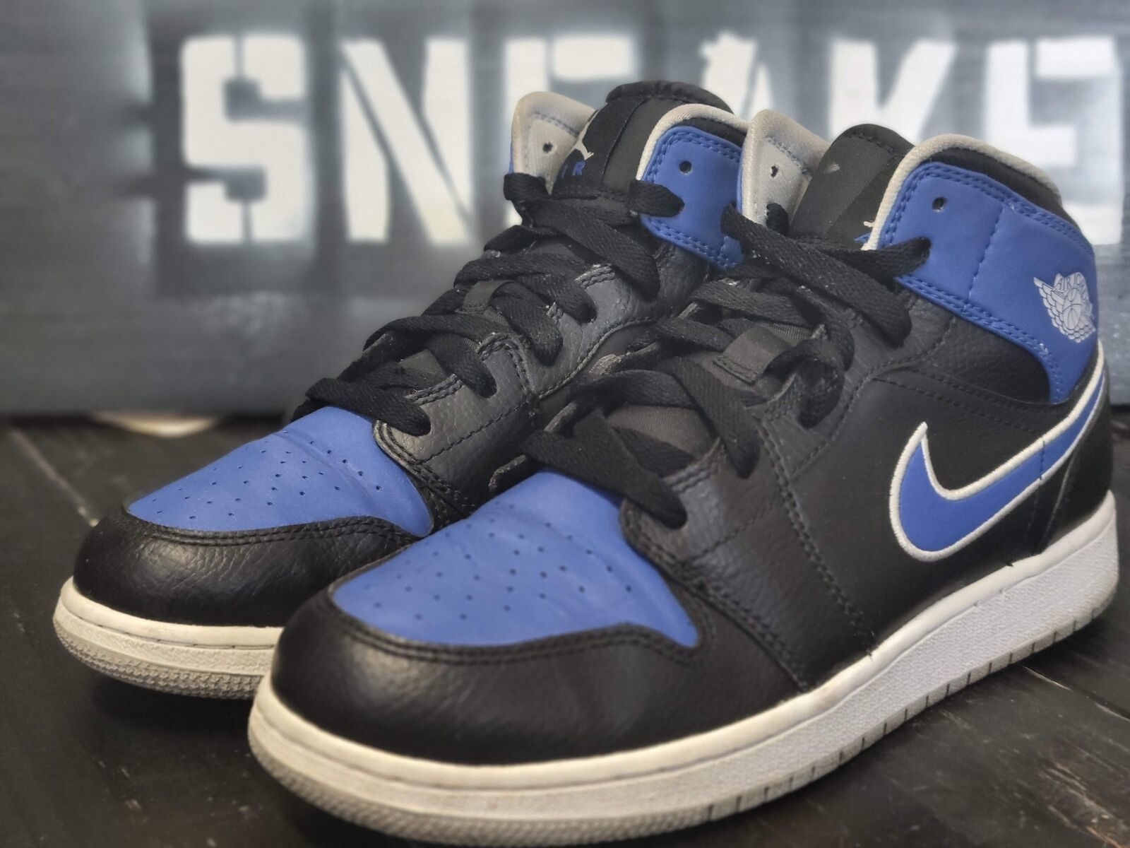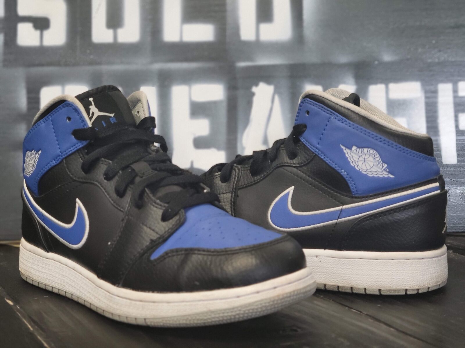 - 2013 Jordan 1 Mid Black/Royal Basketball Shoes 554725-007 Kid 6.5y Women 8