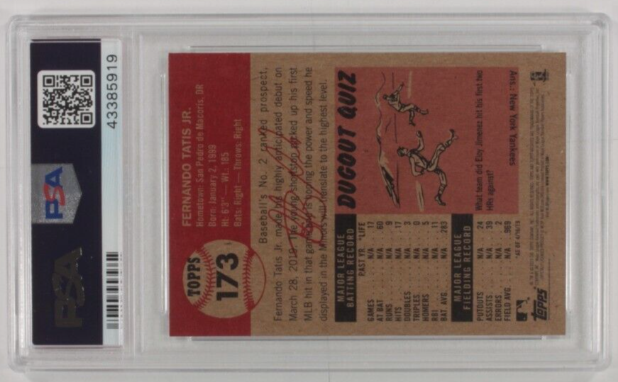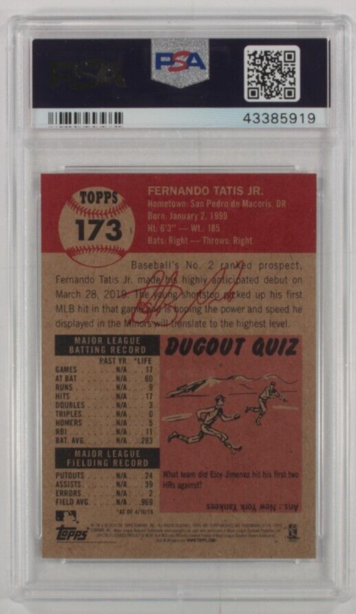 2019 Topps Living Fernando Tatis Jr. Back PSA 10 Gem Mint # 173
