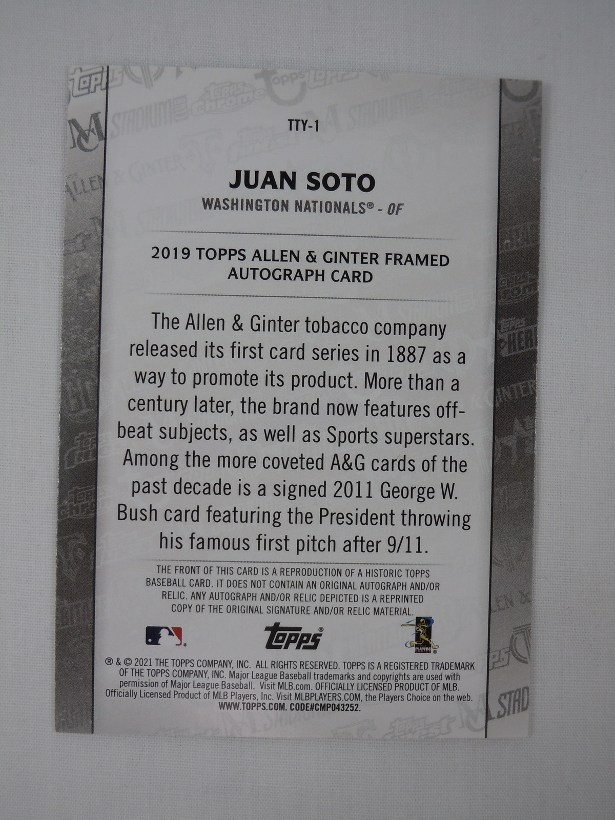 2021 Topps Through The Years Juan Soto 2019 Allen/Ginter Reprint |
