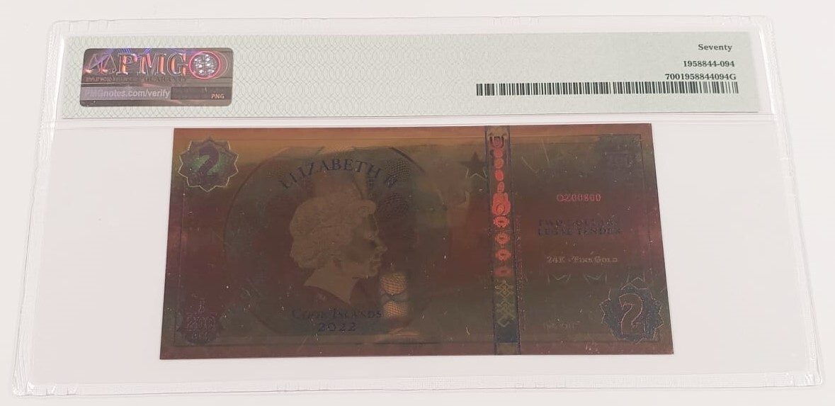 - 2022 Cook Islands Pillars of Humanity 1/200 Oz. Gold Note PMG Gem Unc 70