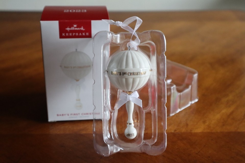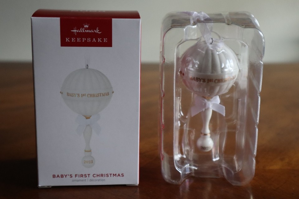 - 2023 Hallmark Baby's First Christmas Rattle 2023 Porcelain Keepsake Ornament
