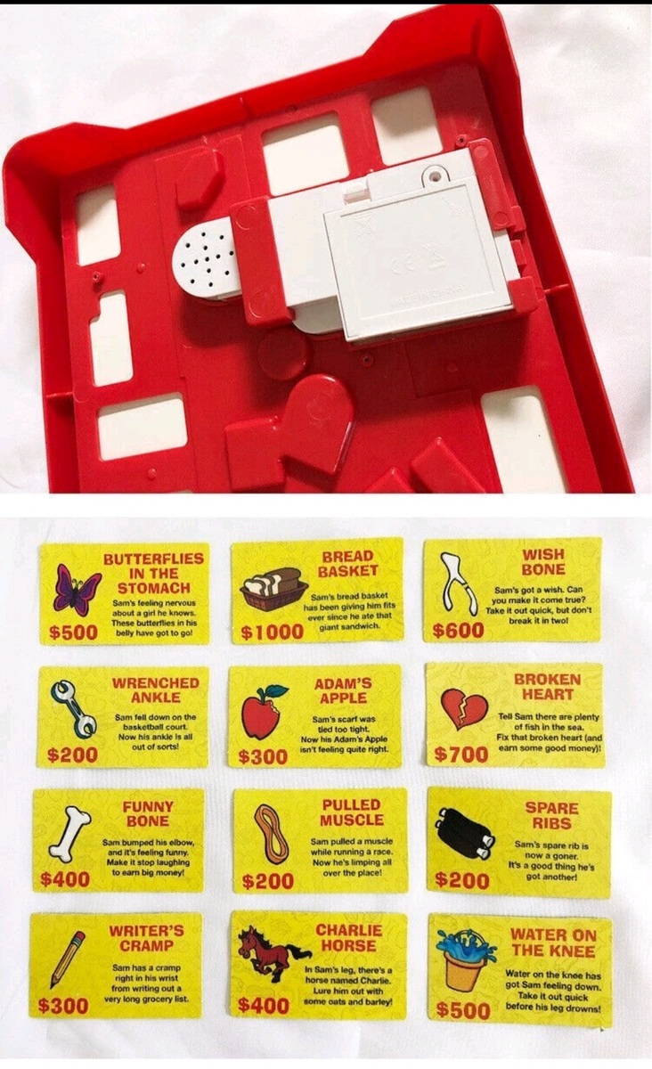 This is a typical family favorite with an updated look and interesting illnesses! Cavity Sam is feeling a bit uncomfortable, and the children would love to "operate" on him to make him better. The children will grab the tweezers and giggle with delight, trying to take out all of Cavity Sam's interesting illnesses without getting "buzzed"! Your child can play Doctor and avoid the silly buzzing sound in this fun game of skill! Start the game by placing each disease on a matching space on the board. Will your child help Cavity Sam and his frog pull muscles or throats? During their turn, they will use tweezers to try to remove a disease from its position without touching it. Try to avoid the "buzzing" or Cavity Sam's nose will light up. Then, it's the next player's turn. When the game ends, all diseases have been removed and the player with the most diseases wins! Play alone or with friends Parents will feel nostalgic when their children play this classic operation game. You also love this game for 1 or more players. If your child plays alone, they can practice their doctor skills. After placing all the diseases on the board, your child can see how many times they can eliminate the diseases without making a buzzing sound. When children play together, they will have so much fun trying to eliminate the most diseases to win. A challenging and interesting game Both children and parents enjoy this classic operation game. Children can't wait to play as the doctor and remove Sam's diseases without making a buzz. Whether playing alone or with others, your child will enjoy the challenges of this fun game.