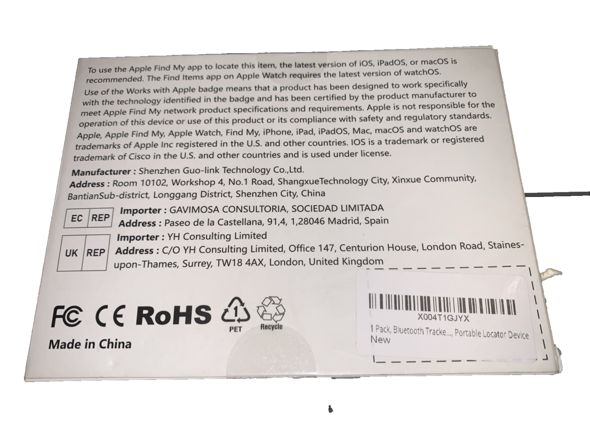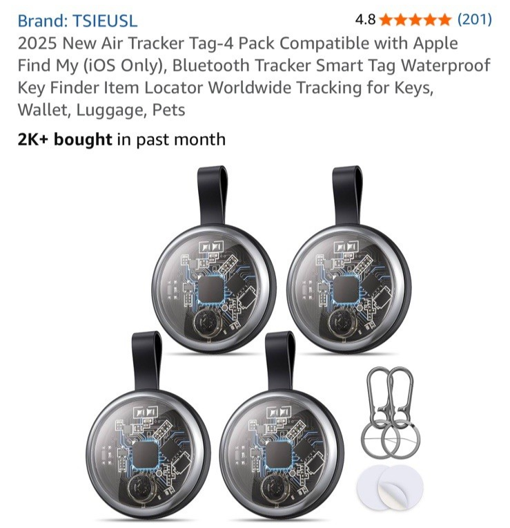 The 2025 New Air Tracker Tags-4 Pack is a set of black plastic tags designed to be compatible with Apple Find My (iOS Only). Each tag weighs 0.22 pounds and requires a lithium-ion battery, which is included in the package. These tags are controlled through a dedicated application and ship globally. Perfect for tracking vehicles or personal belongings, these Air Tracker Tags provide peace of mind and convenience for users looking to monitor their assets.