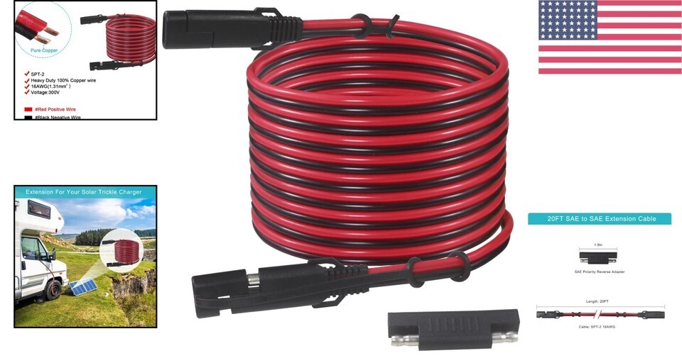 Don?t let short cables hinder your solar solutions. Invest in our 20FT SAE Extension Cable today and enjoy a seamless charging experience!