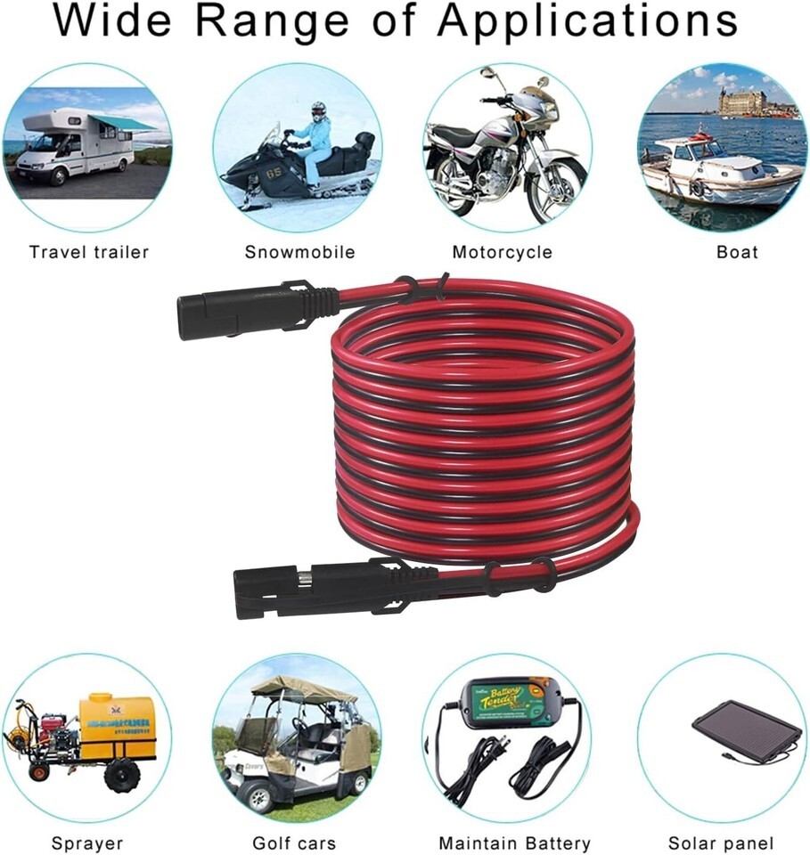 Enhance your solar charging experience with our premium 20FT Heavy Duty SAE Extension Cable. Designed for reliability and durability, this cable is essential for maintaining the performance of your batteries on motorcycles, lawnmowers, ATVs, kayaks, trucks, and sprayers.
