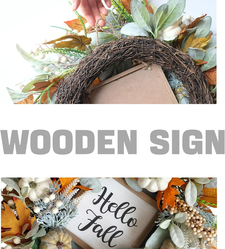 ?Durable?The materials of this fall wreath are all high-quality artificial plants, which can be reused in various festivals.Eucalyptus leaves are silk so they won't fall off easily, and berries are foam so they won't rot. No need for water or special cleaning, and can be used for a long time.