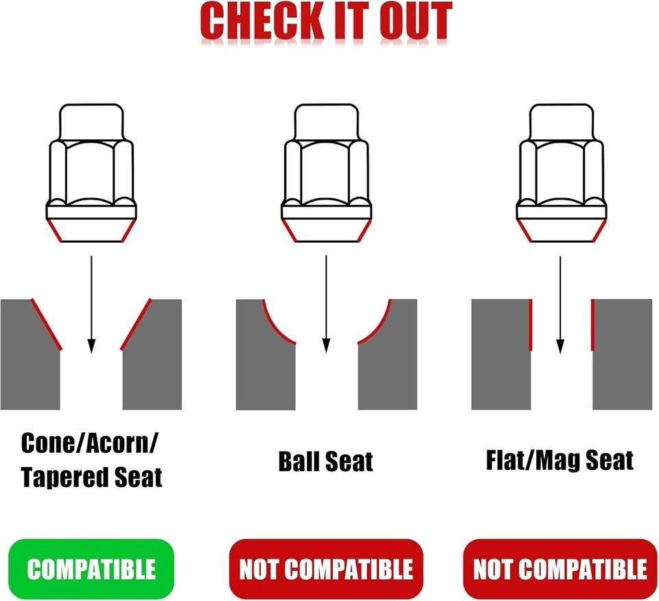 Universal Fitment, Vehicles with 12x1.5 thread, Aftermarket wheels |