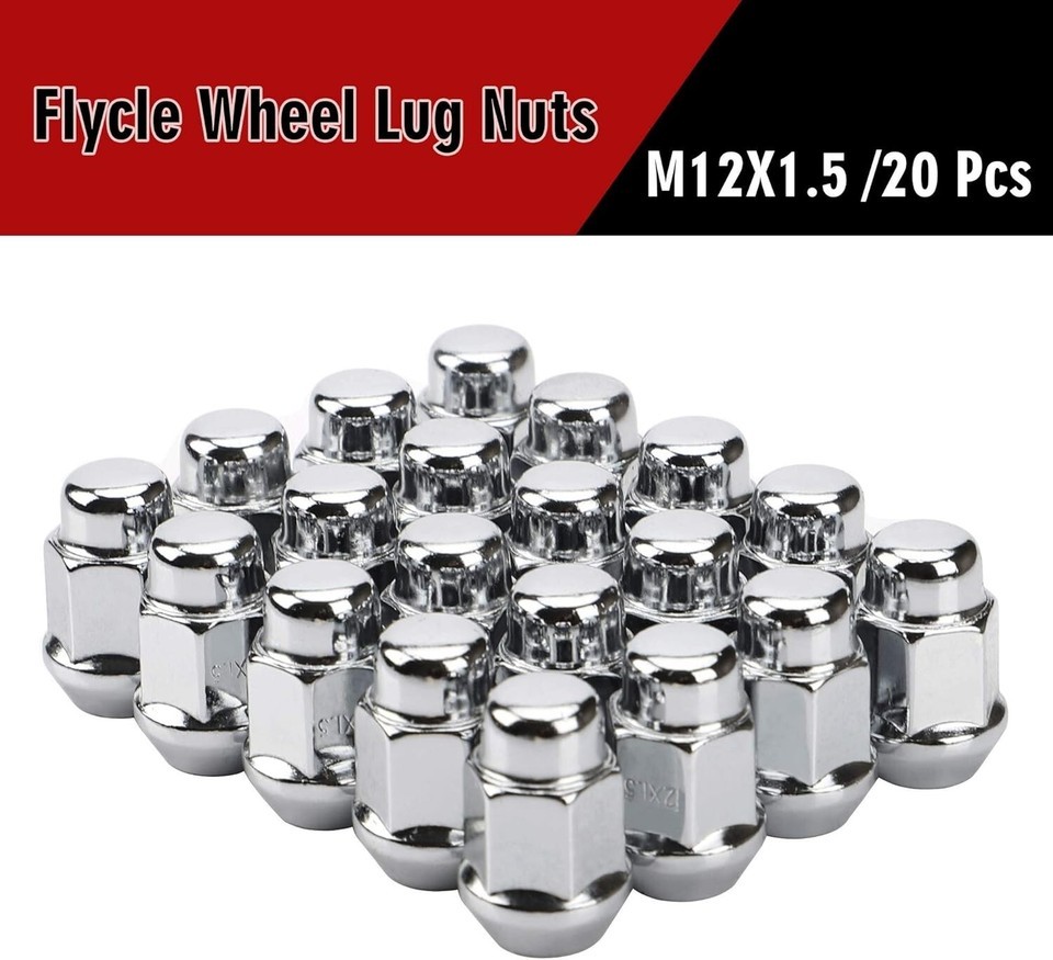 - 20PC Pack of Chrome M12x1.5 Bulge Acorn Lug Nuts for Aftermarket Wheels
