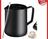- 20oz Stainless Steel Milk Frothing Pitcher with Latte Art Pen - Black Elegance