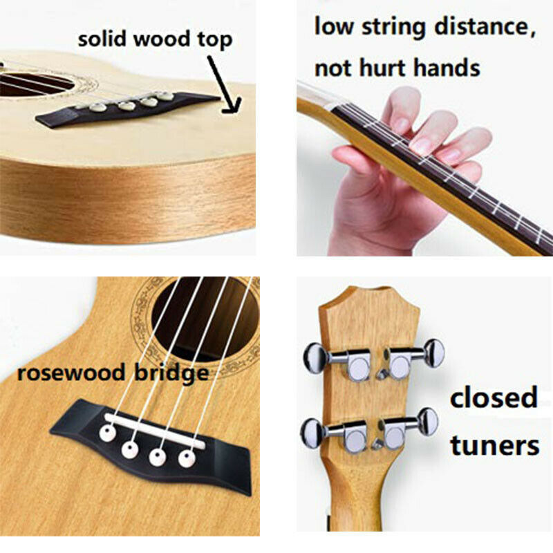 23''Concert Ukulele Ukelele Solid Top Mahogany Guitar Gig Bag Strap Nylon String