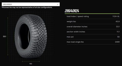 FREE SHIPPING!!! For Questions Contact DB Wheels and Tires Please Refer To Item #306512922902 New Set Of Four GM Style Replica 24" Chrome Platinum Wheels With New 285/40R24 112H XL Atturo Trail Blade XT Tires with TPMS installed. Tires are 33" overall diameter. Your truck may require a level or a lift to fit this size tire. BUYER IS RESPONSIBLE TO CONFIRM LIFT OR LEVEL REQUIRED FOR FITMENT! Seller is not responsible for return shipping due to improper lift or level on truck. Details: Wheel: 24 x 10 6-lug, 6x139.7, 6x5.5 bolt pattern Offset: 28 Back Spacing: 6.6 Blank center cap included (factory cap will interchange or your decal can be applied to blank cap) Chrome is a brilliant and durable finish that, with a little care, can stand the test of time. A classic chrome finish is accomplished in a three step plating process. The first layer of plating is copper which adheres to the wheel and creates a smooth foundation. The second is nickel, providing hardness and durability. The final layer is chrome, which creates a bright cosmetic finish. Tire: Atturo Trail Blade X/T Tires 285/40R24 Overall Diameter: 33" Width: 11.1" Load Index/Speed Rating: 112 H Ply: XL This hybrid tire gives you the best of both an MT and an AT tire! With its MT shoulder block and sidewall design combined with an AT center tread pattern, this tire is at home no matter where you are. Trucks and SUVs older than 2014 will require a lift or level to fit this size tire. Buyer is responsible for confirming fitment prior to purchase. Returns are not accepted on oversized tire packages 24" Chrome Platinum Wheels X/T Tires Cadillac Escalade Chevy Tahoe GMC Yukon FREE SHIPPING!!! For Questions Contact DB Wheels and Tires Please Refer To Item #306512922902 New Set Of Four GM Style Replica 24" Chrome Platinum Wheels With New 285/40R24 112H XL Atturo Trail Blade XT Tires with TPMS installed. Tires are 33" overall diameter. Your truck may require a level or a lift to fit this size tire. BUYER IS RESPONSIBLE TO CONFIRM LIFT OR LEVEL REQUIRED FOR FITMENT! Seller is not responsible for return shipping due to improper lift or level on truck. Details: Wheel: 24 x 10 6-lug, 6x139.7, 6x5.5 bolt pattern Offset: 28 Back Spacing: 6.6 Blank center cap included (factory cap will interchange or your decal can be applied to blank cap) Chrome is a brilliant and durable finish that, with a little care, can stand the test of time. A classic chrome finish is accomplished in a three step plating process. The first layer of plating is copper which adheres to the wheel and creates a smooth foundation. The second is nickel, providing hardness and durability. The final layer is chrome, which creates a bright cosmetic finish. Tire: Atturo Trail Blade X/T Tires 285/40R24 Overall Diameter: 33" Width: 11.1" Load Index/Speed Rating: 112 H Ply: XL This hybrid tire gives you the best of both an MT and an AT tire! With its MT shoulder block and sidewall design combined with an AT center tread pattern, this tire is at home no matter where you are. Trucks and SUVs older than 2014 will require a lift or level to fit this size tire. Buyer is responsible for confirming fitment prior to purchase. Returns are not accepted on oversized tire packages Fits 2000-current year model Chevy Silverado 1500, Tahoe, Suburban, and Avalanche. Fits 2000-current year model GMC Sierra 1500, Sierra Denali, Yukon, Yukon Denali and Yukon XL and Cadillac Escalade. Fits 2023-current year model Chevy Colorado and GMC Canyon (does NOT fit earlier year models). Fits 2019-current year model Dodge Ram 1500 6 Lug trucks (does NOT fit earlier year models or 5 lug trucks) Dress up your truck or SUV with these new GM Style Replica Wheels and New Tires. Included in This Package Set of Four TPMS Sensors programmed and installed (please indicate your year model at checkout or send us a message otherwise sensors will be programmed for 2007-2018 GM truck or 2007-2020 GM SUV Blank Center Caps (original center caps are interchangeable or decals can be applied to blank caps) Available for Additional Purchase Set of 24 Polished GM Lug Nuts (item number 303805148468) Set of 24 Black Lug Nuts (please contact us to purchase) This purchase will be for FOUR wheels and tires. "Quantity of 1" means a set of 4 wheels with mounted tires. These are mounted and balanced and ready to put on your vehicle. Wheels include a lifetime warranty on structure and a one year warranty on the finish. If you do not respond to our messages requesting year, make and model, then these will ship with TPMS for 2007-2018 GM 1500 trucks or 2007-2020 GM 1500 SUVs. If your vehicle model is outside this range and you did not message us before they are shipped, then you will be responsible for purchasing the correct sensors and paying to have them installed. Fitment Guide Please Note: Please read the description below for fitment details and contact us with any questions. These 6 lug wheels fit all Chevy, GMC, Cadillac and Ram trucks or SUVs listed below. Cadillac Escalade 1999-2025 Fits all models except hybrid Cadillac Escalade ESV 1999-2025 Fits all models except hybrid Chevrolet Avalanche 2002-2013 Chevrolet Colorado 2023-2025 Chevrolet Silverado 1500 1999-2025 Chevrolet Suburban 1988-2025 Chevrolet Tahoe 1999-2025 GMC Canyon 2023-2025 GMC Sierra 1500 1999-2025 GMC Yukon 1999-2025 Infiniti QX80 2014-2025 Nissan Armada 2004-2025 Nissan Titan 2004-2025 Ram 1500 2019-2025 (6 lug models) About Us Shipping Payments Returns About Us About Us Shipping Payments Returns About Us DB Wheels and Tires is a Family Owned and Operated business specializing in Factory OEM Takeoffs and Replica Style Wheels and Wheel and Tire packages. Visit DB Wheels and Tires store to see more great products and information about our store located in Thomasville, GA. See pictures of our satisfied customers' trucks and SUVs that have visited our showroom and warehouse or bought online from us. Buy with confidence from experts with years of personal experience in fitment