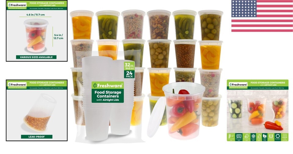 - 24-Pack 32oz Leak-Proof BPA-Free Food Storage Containers – Perfect for Meal Prep