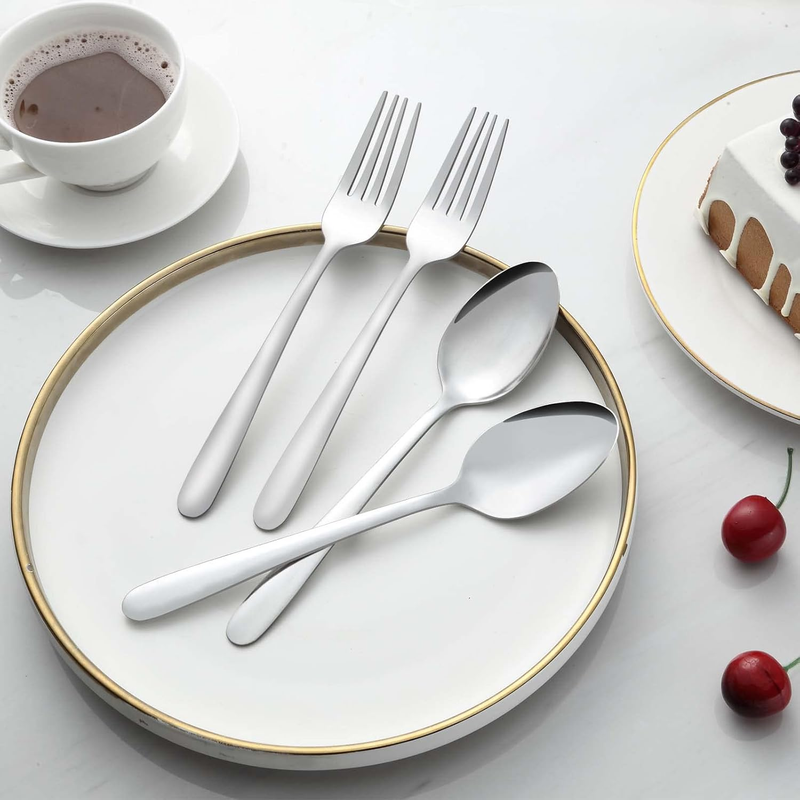 These spoons and forks are made by a more advanced process, which greatly improves its sturdiness, durability and corrosion resistance. So they will be not bend easily and can be used for a long time. Besides, the 24-piece spoon and fork set is dishwasher safe to save your labor.