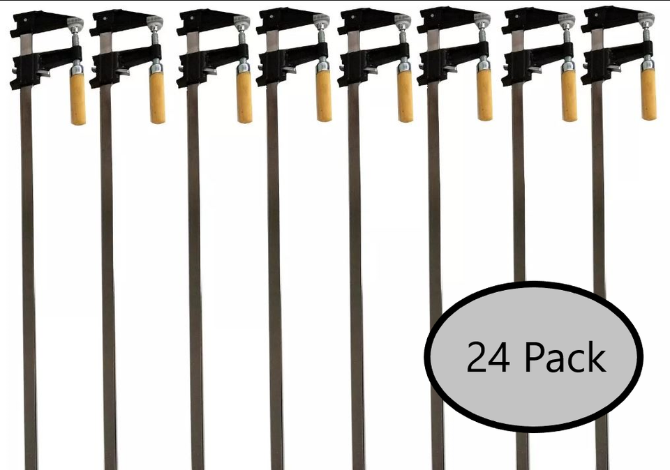 Welcome to Winning Choice. Please take some time and visit our Store Ultimate 24-Piece Steel Bar Clamp Collection Case 18" Steel Bar Clamps Wholesale Quick Release Ratcheting Tools This heavy-duty 36" Steel Bar Clamp is built to handle your toughest clamping jobs with precision and reliability. Featuring an F-style design, it delivers powerful clamping force, ideal for woodworking, metalworking, cabinetry, and general repairs. The 2.5" jaw depth allows for greater reach and holding capacity, ensuring secure and stable clamping for large projects. Key Features: A great item to resell online or use them all for large projects Suitable for a Wide Range of Woodworking and Metalworking Feature: Large Clamping Capacity Size: 2.5 in. Throat Depth Type: Clutch Style Clamp. Powder Coated, Sliding Jaws Material: Hardwood Handle, Cast Iron Jaws, Steel Slide Use: 2-piece Clutch Plates for Easy Positioning A needed addition to any woodworking shop. Heavy duty clamping power. Suitable for a wide range of woodworking. Steel bar clamps are used by professional cabinet makers, carpenters, woodworkers, metalworkers, and with confidence by the do it-yourself homeowner on weekend projects. _________________________________________________________________________________________________________ Thank you for checking our listings! We strive for 100% customer satisfaction! Positive Feedback is very important to us. We try our very best to make sure every customer is completely satisfied. If there's a problem, message us! We're happy to help. We will reply to your email within 24 working hours. Contact Us: Customer service available Monday thru Friday 8am - 2pm EST. (Closed Weekends) Unsatisfied with your purchase? Please contact us before leaving feedback, we promise we will do our best to supply a satisfied solution. Please don't leave neutral or negative feedback without communication first, it is not fair to seller, and it can't resolve anything. Communication is very important when we are doing business. Payment: We accept PayPal and all major credit cards. Shipping: Please make sure your and Paypal address is correct before you pay. This may not be able to be changed. Items will be shipped within 1-2 business day once payment is received. (CLOSED Weekends) Items under 1 lbs will ship UPS Mail Innovations (Final Delivery USPS), items 1-9 lbs will ship FedEx SmartPost (Final Delivery USPS), items over 9 lbs will ship FedEx Home Delivery.