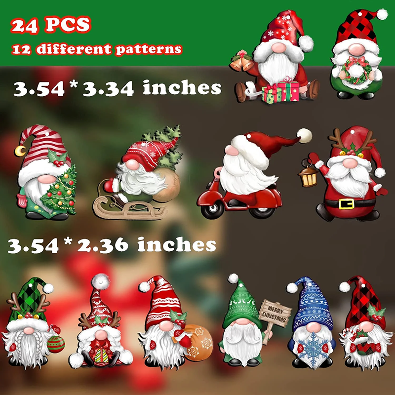 ?New Designed Christmas Gnome Wooden Ornaments -- 24 PCS gnome wooden slices with exquisite workmanship in 12 different styles are made of high-quality wood, painting in front and empty at back.