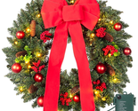 Large 24" Christmas Wreath with 50 LED Warm Lights Pre-Decorated with Red Bow, Pine Cones, Balls, Golden Red berries IP65 Waterproof String Lights for Indoor and Outdoor Use 8 Lighting Modes Suit Different Moods and Occasions Like Parties and Celebrations Auto Timer with 6 Hours ON 18 Hours OFF LED String Lights Fully Life-Like Tips and Nature Green Color Thick Needles Ideal Christmas Wreaths for Front Door Windows Indoor Outdoor Decorations