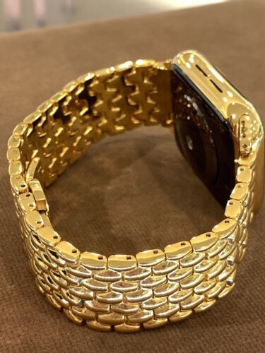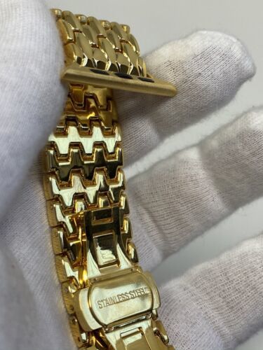 - 24K Gold Plated 42 44MM Links Band Butterly Buckle Apple Watch Custom BAND ONLY