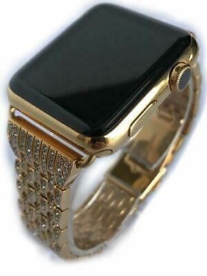 - 24K Gold Plated 42MM Apple Watch SERIES 3 Gold Links Band Diamond Rhinestone