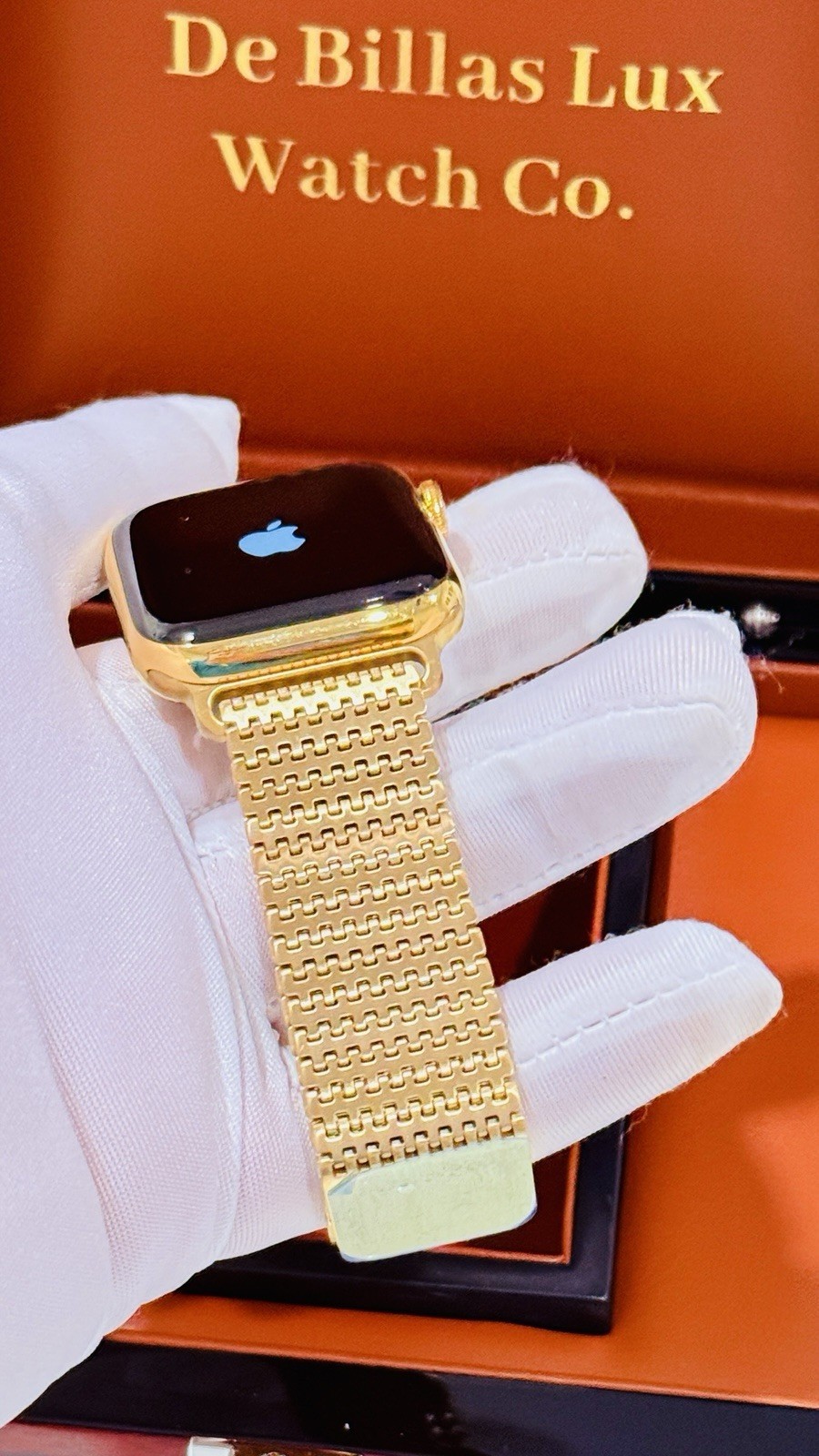 24K Gold Plated 45MM Apple Watch SERIES 9 With Gold Milanese Mesh Band GPS LTE