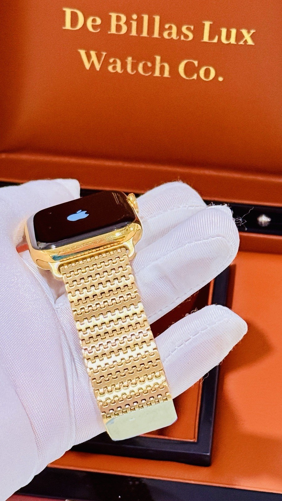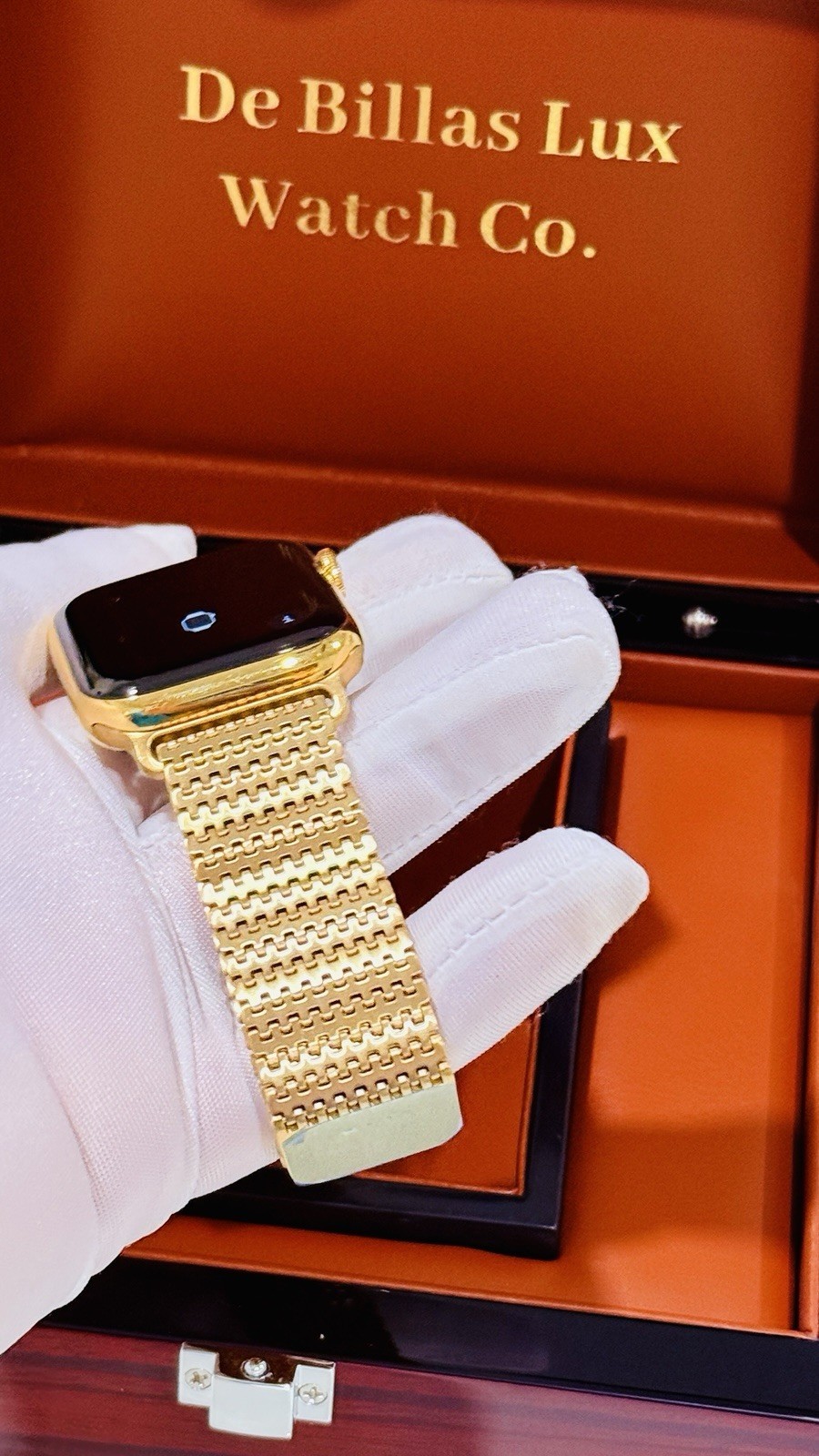 - 24K Gold Plated 45MM Apple Watch SERIES 9 With Gold Milanese Mesh Band GPS LTE