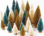 24Pcs Mini Christmas Trees Bottle Brush Trees with Wood Base, Christmas Village Trees for Tabletop Christmas Decor Holiday Winter Decorations