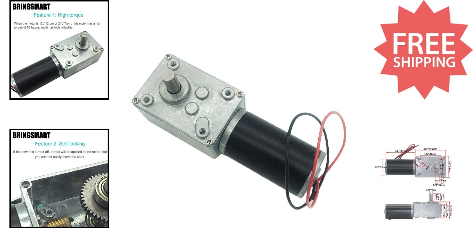 Discover the versatile BRINGSMART DC Geared Motors, designed for a wide range of applications including automation, security, and robotics. Featuring self-locking worm gear technology, these motors provide high torque (up to 70kg.cm) and precise control with options of 12V or 24V configurations, varying speeds, and customizable rotation directions through wiring adjustments. Constructed with durable materials and an 8mm output shaft, each motor ensures reliable performance for equipment such as safe boxes, automated curtains, or rotating tables. Trust in genuine BRINGSMART quality, backed by dedicated support and continuous improvements. Perfect for DIY projects and professional integrations alike.