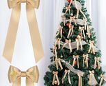 - 24pcs Christmas Bows Decor,Bows for Gift Polyester Champagne Gold