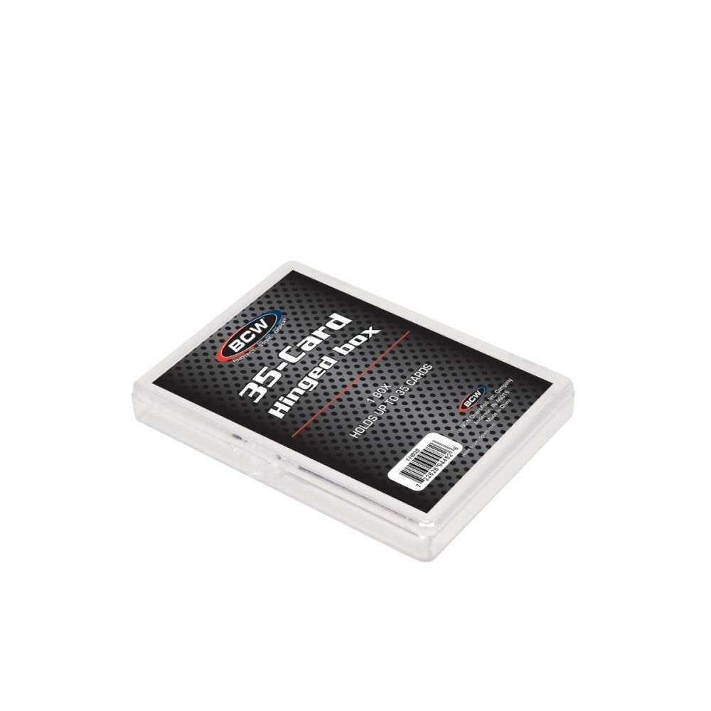 Protect and store your trading card collection with the BCW Hinged Trading Card Box - 35 Count, a premium storage solution designed for collectors and professionals seeking organized, protected, and accessible card storage. Made from crystal-clear, high-impact polystyrene, this plastic card box allows you to display your cards without opening the case. With a 35-card capacity, it?s ideal for holding standard-sized trading cards like baseball cards, Pokemon, Magic: The Gathering, and YuGiOh, as well as business cards?offering versatile storage for both personal and professional use. Equipped with a secure snap lock closure, this trading card storage box keeps your cards firmly in place, providing peace of mind when transporting or displaying your collection.