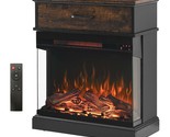 - 25" Vintage Brown Wood Side Table w/ 3-Sided Glass Electric Fireplace