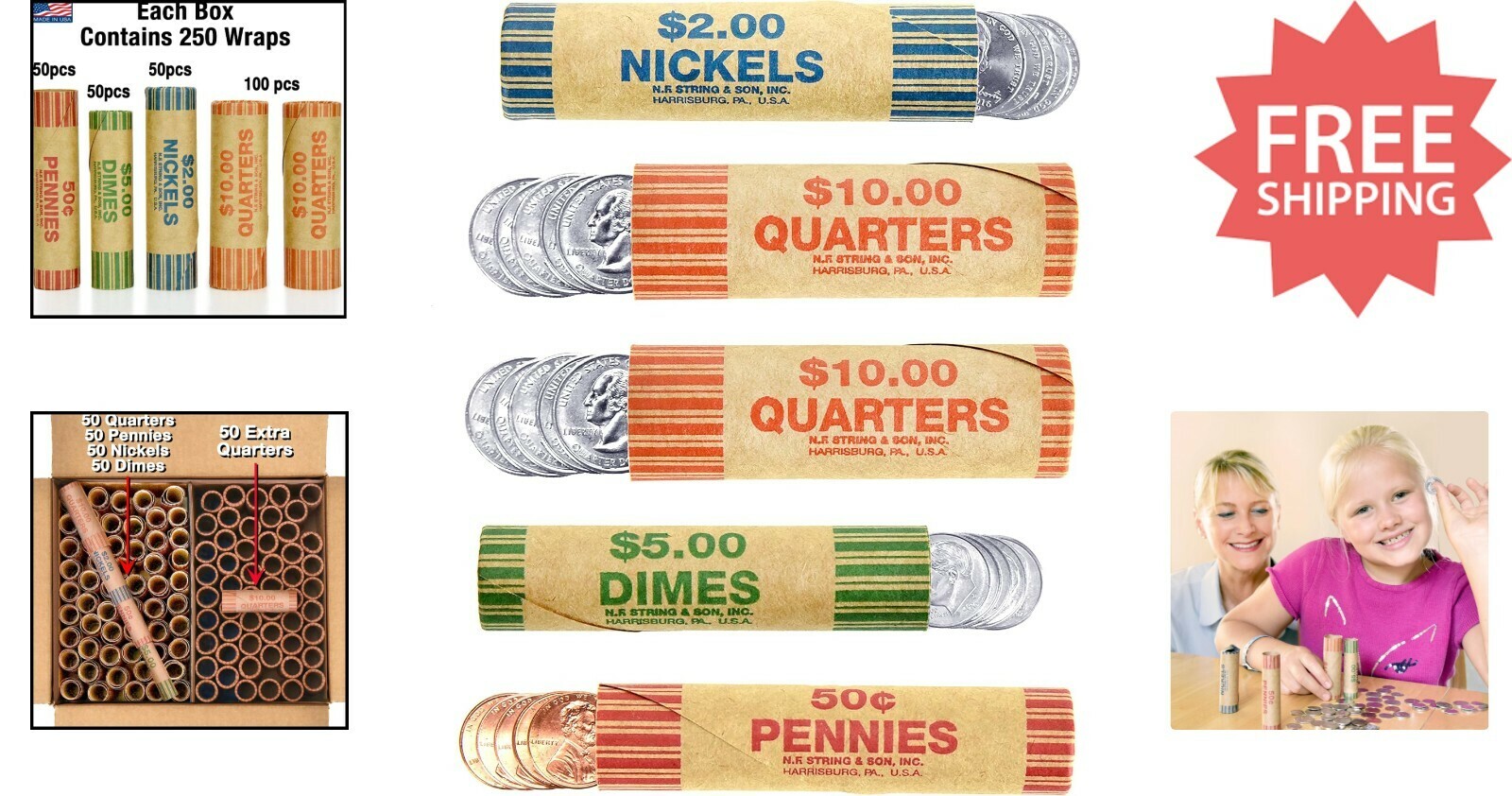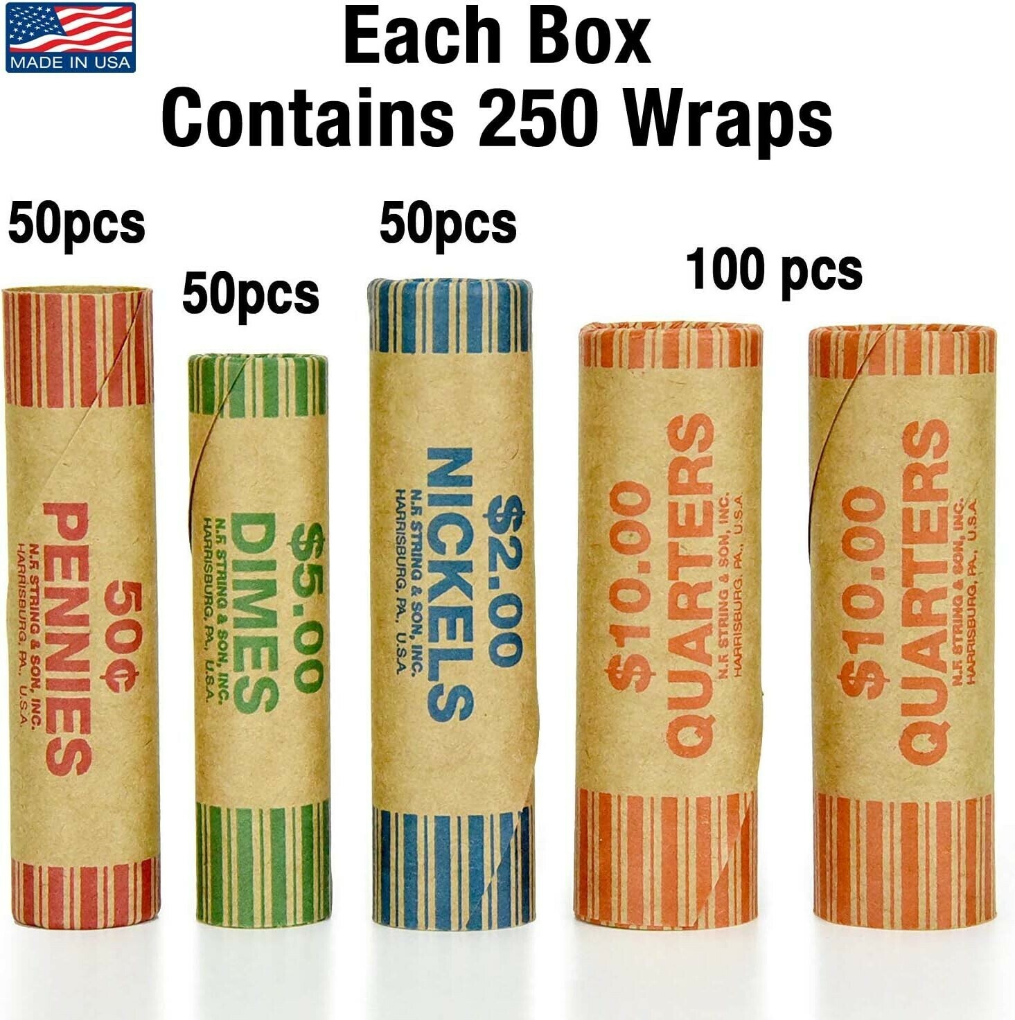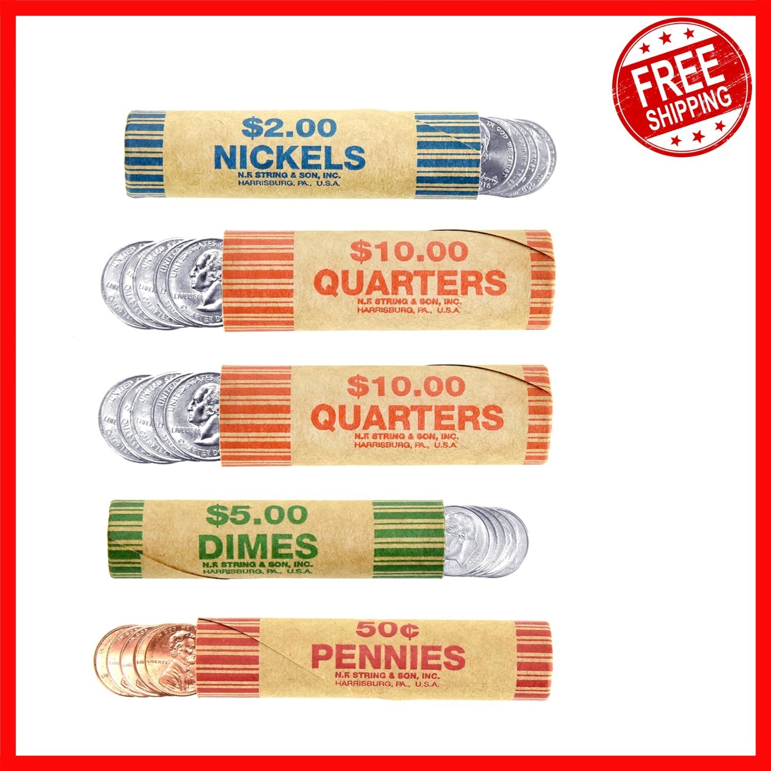 Discover our coin wrapping bundle, now housed in a new, sturdy box designed to prevent tube cracking during transit. This comprehensive set includes 100 quarters, 50 pennies, 50 nickels, and 50 dimes, all in separately packed, vertically stored coin wrapper rolls made in the USA. Crafted with ABA color-coded, double-wrapped kraft 60lb. paper, our firm crimped end coin wrappers are built for durability and ease of use. Enjoy a risk-free purchase with our 30-day satisfaction guarantee and full refund option. To ensure fast and reliable delivery, we work with multiple fulfillment partners and suppliers. Depending on availability and location, your order may ship from different warehouses or arrive in packaging that varies from item to item. Tracking details are typically provided shortly after shipment, and customer satisfaction remains our top priority. Please note that due to carrier policies and regional regulations, certain items may not be eligible for delivery to specific states or territories.