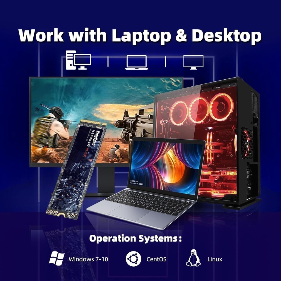 - 256GB M.2 2280 NVMe Gen3x4 Internal Solid State Drive, Up to 2400MB/s Read, 3...