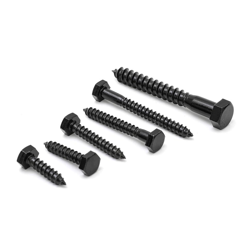 25PCS 1/4" x 1-1/2" Black Stainless Steel Lag Bolts with Washers