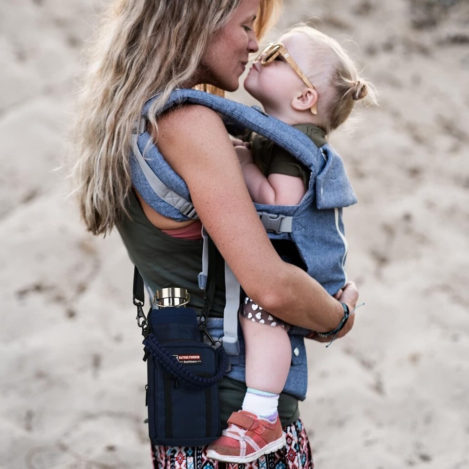 - 25oz Insulated Water Bottle Sling Carrier with Shoulder Strap for Outdoor Sports