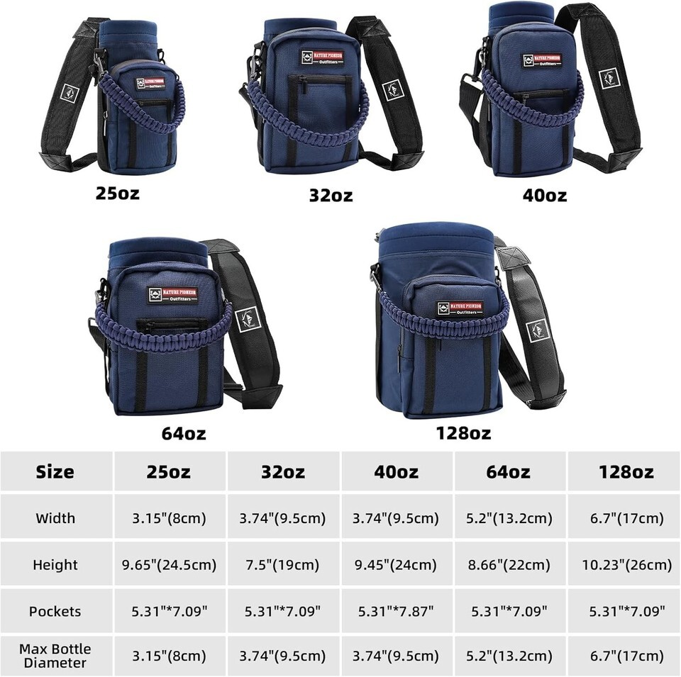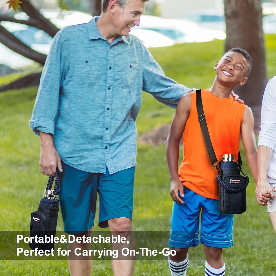 Portable Hands-Free: Designed for the active lifestyle, this water bottle holder features a durable paracord handle strap and a padded shoulder strap, ensuring you can carry your bulky water bottle with ease.