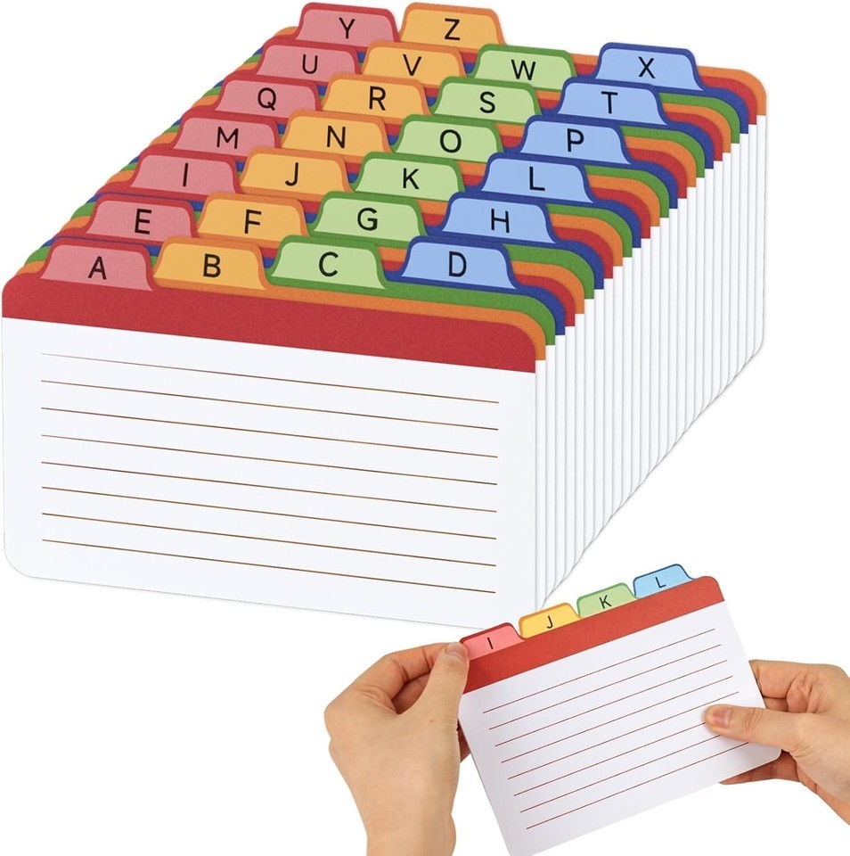 About this item Upgrade Size - Every piece of index card is 6 x 4inches, winder spacing between lines, so you can write words legibly and neatly. Premium Quality - Every piece of index card is made of high-grade paper, acid-free, thickened and wrinkle resistant. No fluorescent agent added, no color fading conern, no ink bleeding issue. Widely Used - Our index cards can be used as flash cards, note cards, study cards, cue cards, recipe cards, game cards, message cards, etc. Perfect for pre-school teaching, memorization, study, office supplies, meetings, presentation, etc. Package Includes - There are 26 index cards in total, each featuring a different English letter. Users can easily find the index card they need based on the displayed letter. Thoughtful Design - This index card can also be used as a separator in a notebook, allowing users to quickly locate the desired page. The index card organizer is ideal for primary school students or those who write in larger fonts.