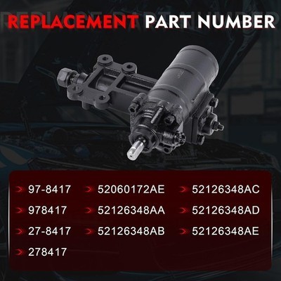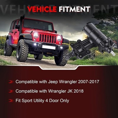 Replaces OEM Part Number: The Power Steering Gearbox Gear Box Replaces 97-8417, 978417, 27-8417, 278417, 52060172AE, 52126348AA, 52126348AB, 52126348AC, 52126348AD, 52126348AE Compatible Models: The Power Steering Gearbox Gear Box Compatible with Jeep Wrangler 2007-2017, Compatible with Wrangler JK 2018. Fit Sport Utility 4 Door Only, For Left Hand Drive Only Premium Material: This Power Steering Gearbox Gear Box is made of premium material, corrosion-resistant and wear-resistant, can withstand the extreme working conditions. It's thoroughly tested to ensure performance and lasting quality High Performance: The steering gear box is a crucial component of the vehicle's steering system. It controls the movement of the wheels based on the rotation of the steering wheel, ensuring optimal steering response for smoother and more efficient driving Buy with Confidence: Before purchasing the Power Steering Gearbox Gear Box, we strongly recommend verifying your OE number and specific model to ensure a fit. Should you have any questions or require assistance, we are readily available to provide you timely service and support. Sincerely hope you have a happy life!