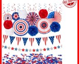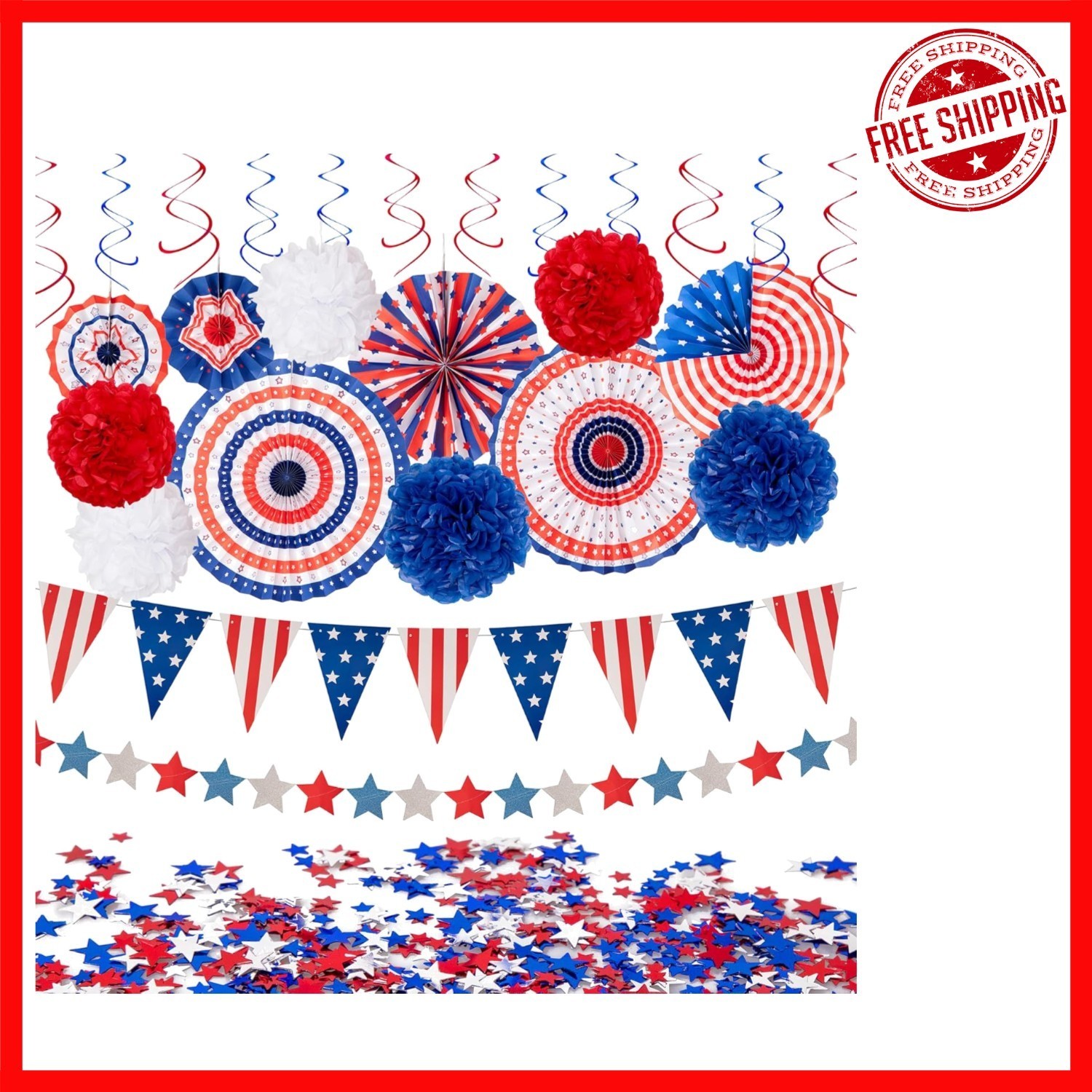 29PCS 4th of July Patriotic Decor Set - Fans, Pom Poms Banners for Celebration