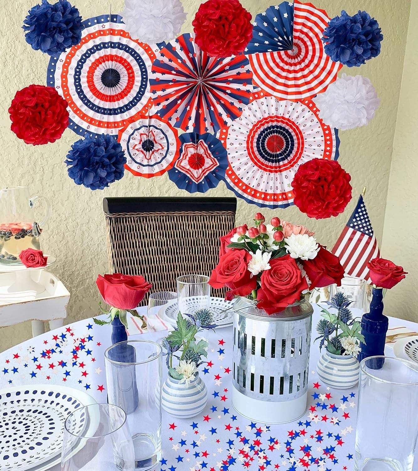 - 29PCS 4th of July Patriotic Decor Set - Fans, Pom Poms & Banners for Celebration