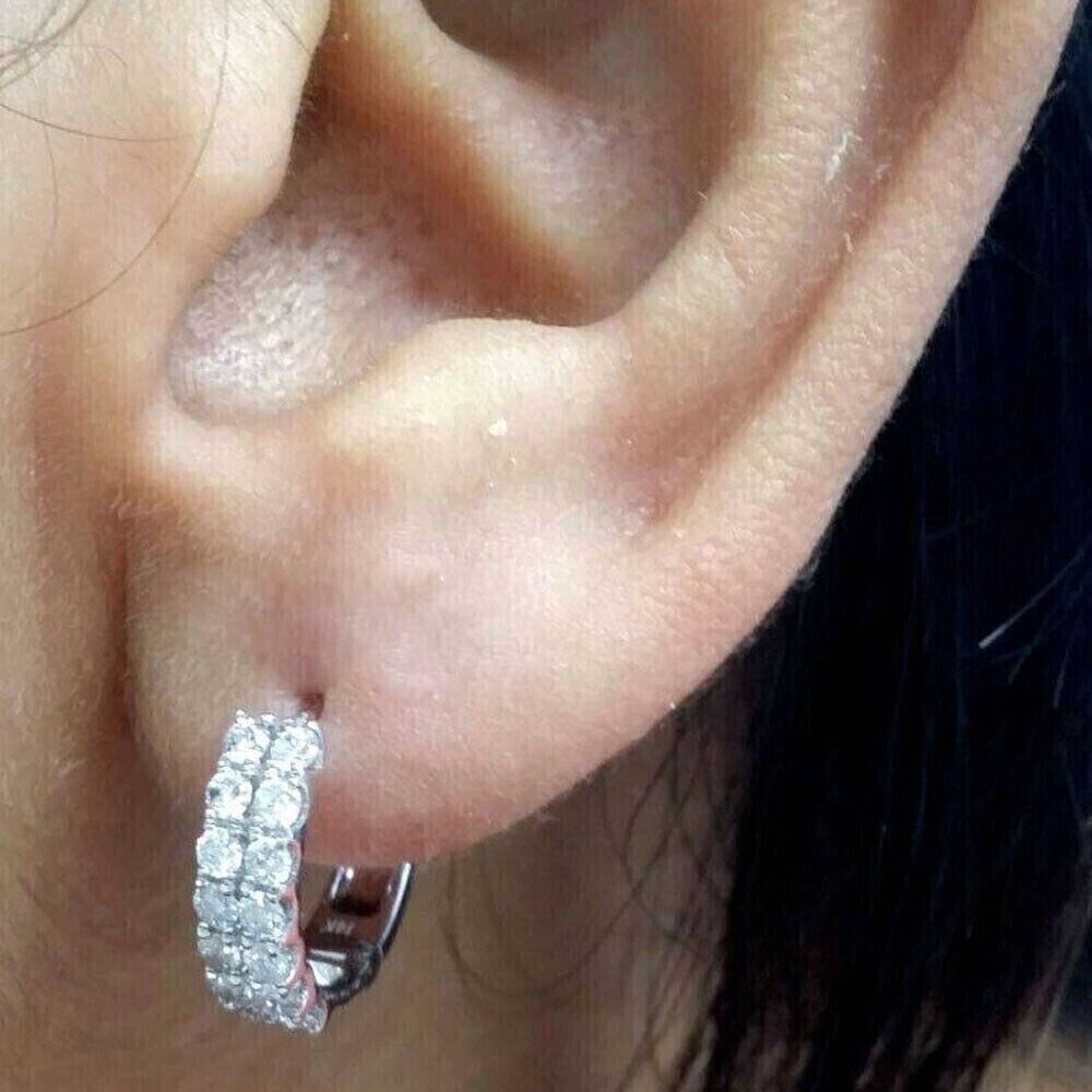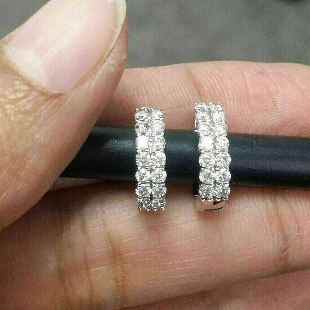 2Ct Simulated Round Diamond Hoop Huggie Earrings 14K White Gold Plated Silver