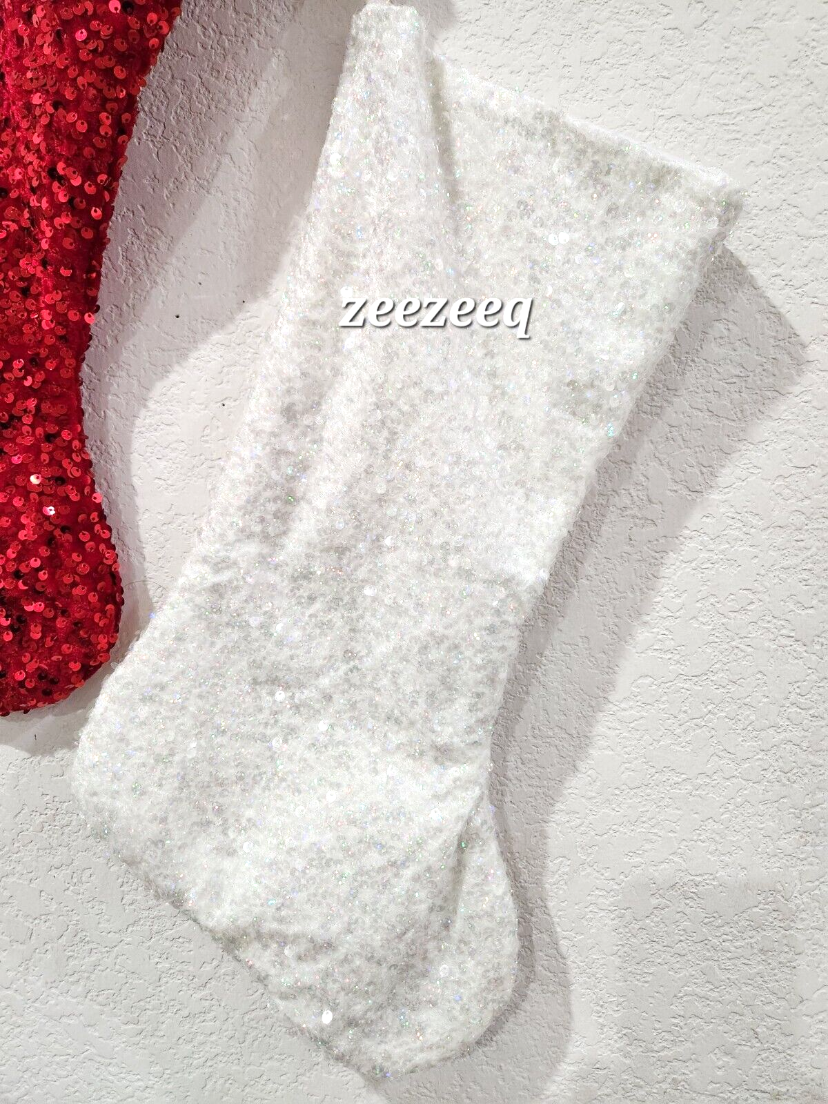 Up for sale we have these goegouse red and white stockings for your Christmas decor. These are so beaituful!! The stockings are full of sequins. These look so elegant. Perfect for a bedroom too! Size 20" long.