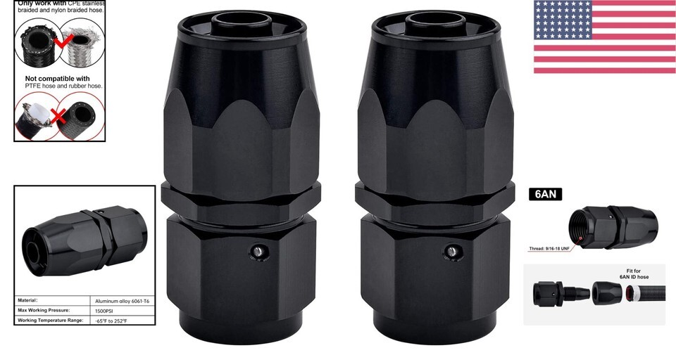 - 2PCS 6AN Black Swivel Hose Fittings for Easy Assembly – Aluminum Alloy