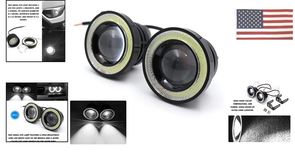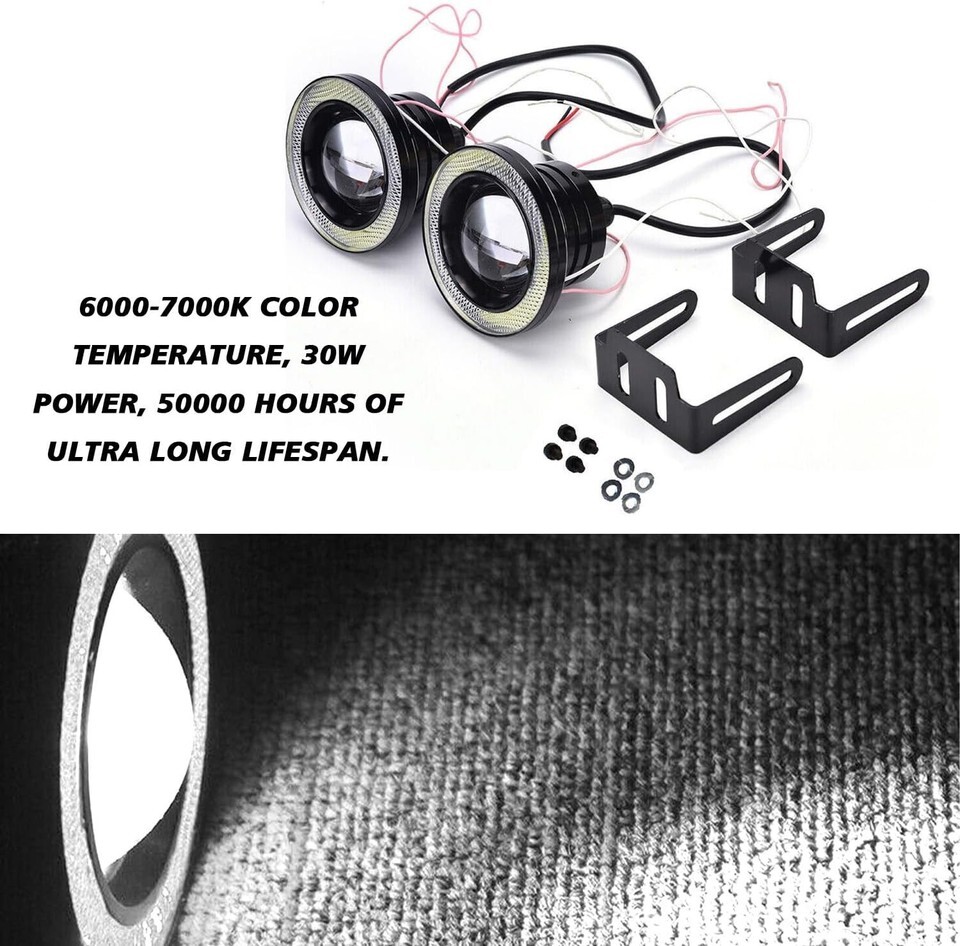 - 2Pcs Angel Eye Halo Ring LED Fog Lights DRL, 12V 10W 3-Inch Projector, Super ...