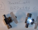 BRPX14X C UPC# 026613142326. NEVER USED, SCRATCHED UP A BIT, INCLUDES ALL FITTINGS, SOLD WITHOUT MANUFACTURERS PACKAGING. THIS SET OF TWO (2) MATCHING BRPX14X C VALVES HAVE A 1/2" NOMINAL BARB INLET X 3/8" OD COMPRESSION OUTLET MULTI TURN STRAIGHT VALVE. THIS VALVE IS DESIGNED TO CONTROL WATER FLOW TO HOUSEHOLD PLUMBING FIXTURES LIKE FAUCETS, TOILETS, DISHWASHERS, ICEMAKERS AND WASHING MACHINE. THE STRAIGHT VALVE IS MOST OFTEN USED WHERE THE WATER PIPE ENTERS THE ROOM FROM THE FLOOR. WITH A FEW TURNS OF THE VALVE HANDLE, YOU ARE ABLE TO STOP THE FLOW OF WATER LEADING TO THE PLUMBING FIXTURE, ALLOWING FOR MAINTENANCE AND REPAIR WITHOUT TURNING OFF WATER TO THE ENTIRE HOME. YOU WILL RECEIVE THIS SET OF TWO (2) BRASSCRAFT VALVES SHIPPED BY USPS.....
