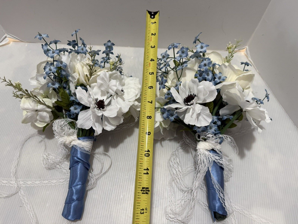 - 2pc set Steel Blue / Gray and white Artificial Bouquets For Bridesmaids DYI