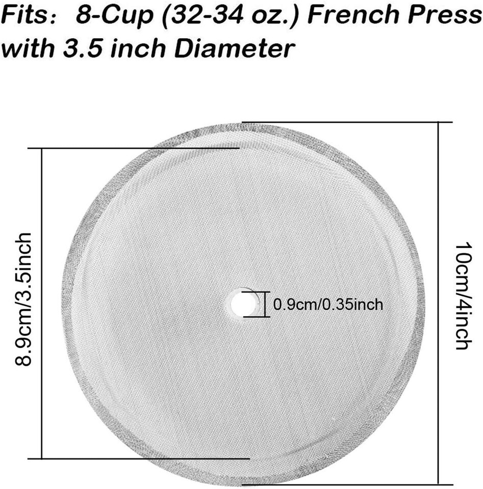 2pcs French Press Mesh Replacement Filters, Stainless Steel Fine Mesh Screens, Universal 34oz/8-Cup Compatible Coffee Press Parts