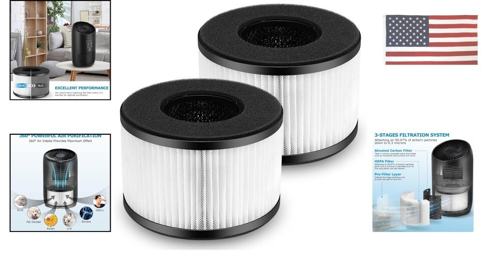 - 2x BS-03 True HEPA Air Purifier Replacement Filters for PARTU & Slevoo BS-03 ...
