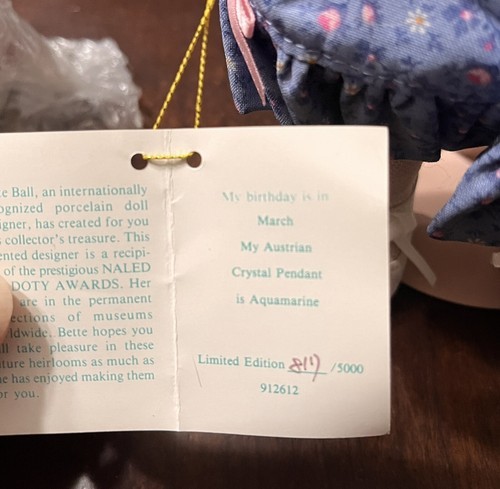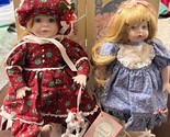 - 2x Dolly Dingle Dolls Porcelain Head Doll Carol Anne Goebel March Birthstone 10”